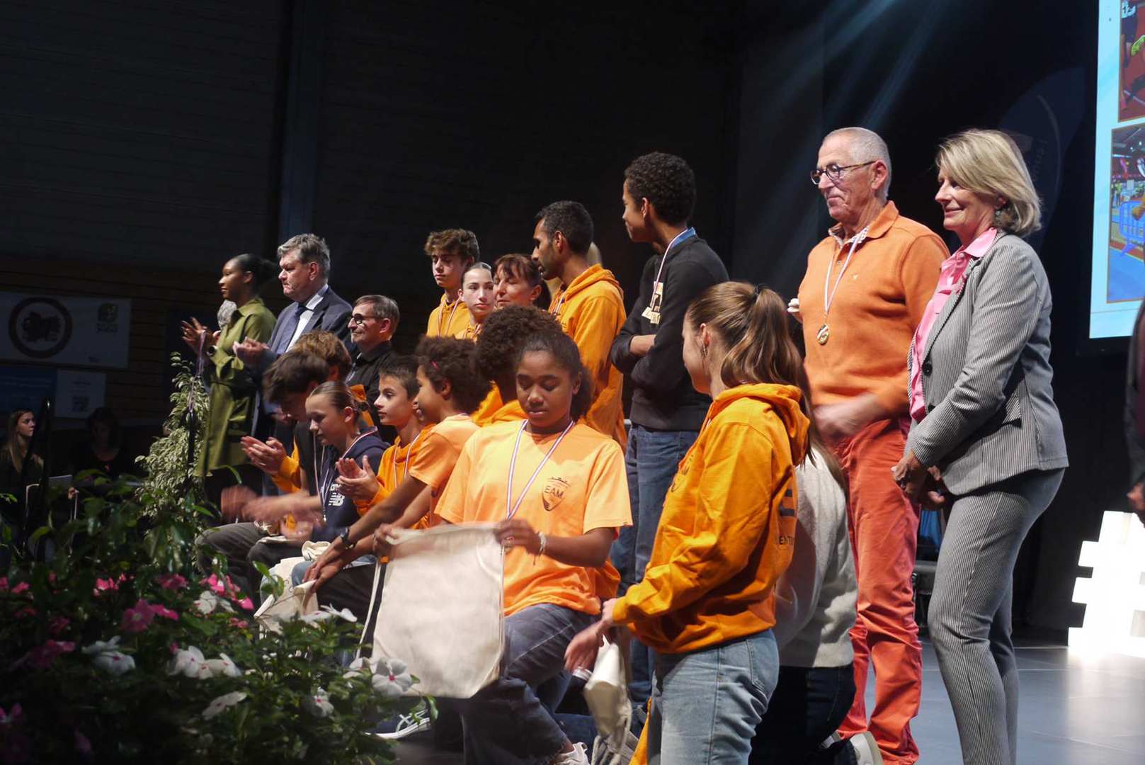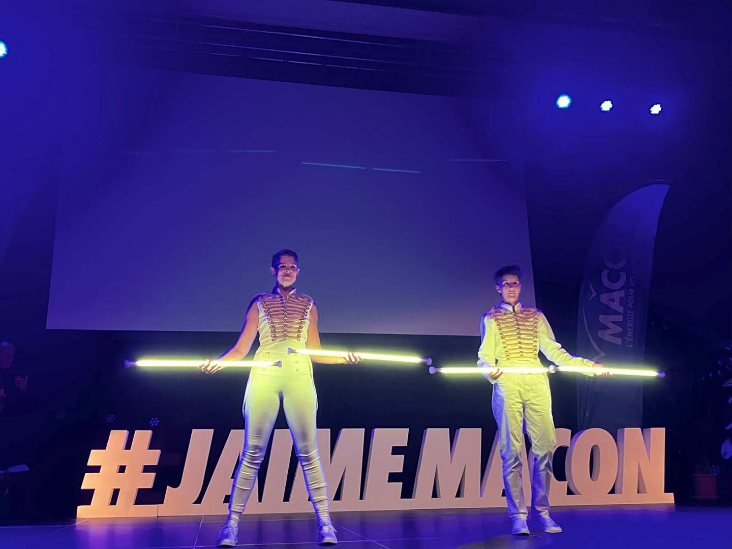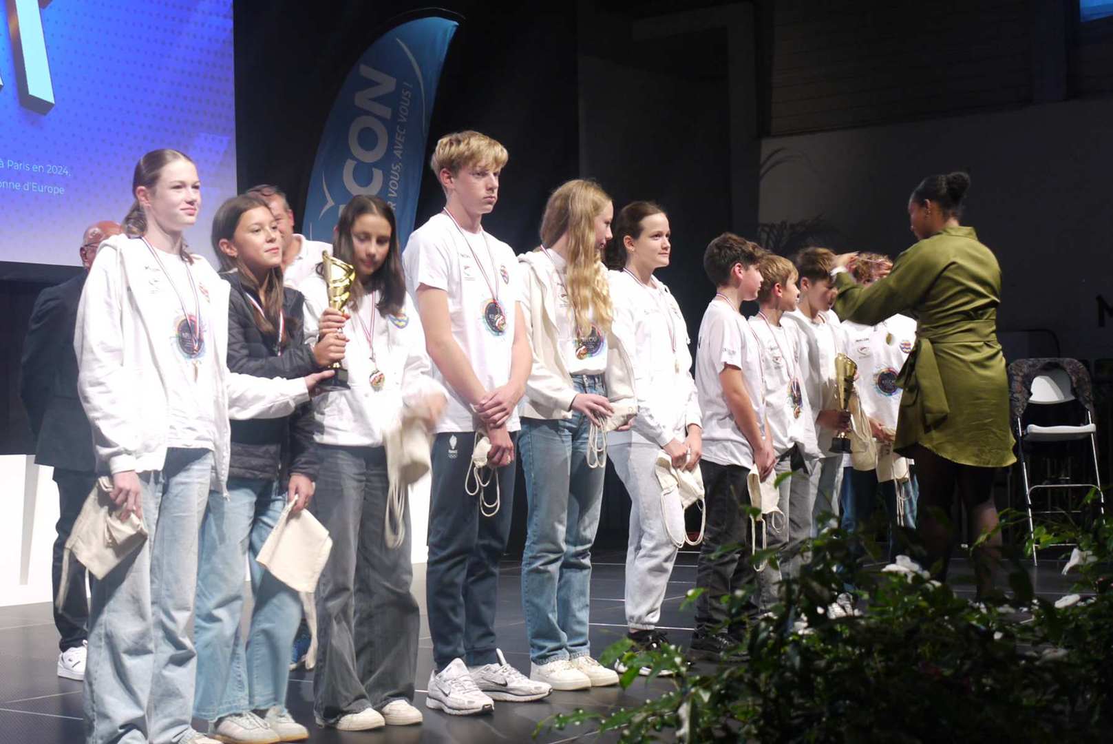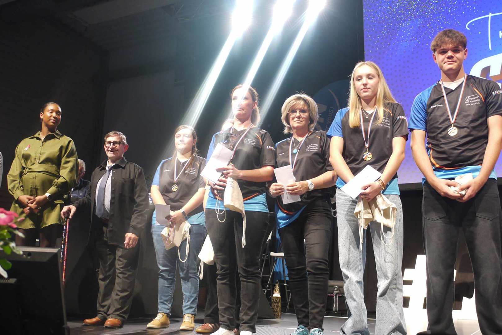 Avant d’entamer la remise des prix, une médaille de la ville est remise à Coraline, après un retour sur ses exploits, marquant ainsi l’honneur de l’avoir invitée pour la cérémonie. Les 22 clubs ou associations sportives ont pu ensuite se succéder sur scène ou leur a été remis médailles et trophées pour récompenser leurs réussites. Sourires et geste de reconnaissances s’enchaînent sur une scène souvent bien remplie par les nombreux sportifs triomphants. Des show de jonglage avec jeux de lumière venaient ponctuer la cérémonie pour le plus grand plaisir du public.