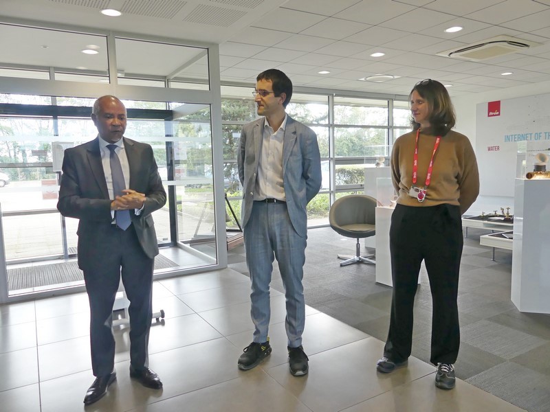 Le directeur du site de Mâcon de ITRON FRANCE Jean-Philippe Fieldes, sa Directrice des Ressources Mileva Berger et Stéphanie Long responsable RH, ont accueilli très chaleureusement ce matin, le Préfet, Daniel Boussit directeur de la DDETS et Molly Pomares consultante RH en Saône-et-Loire pour SIRAC et Baptiste Dumas, référent pour SIRAC.