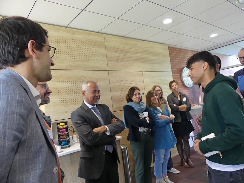 Timothée Mayassi, du Congo kinshasa, vient de débuter ce matin. Il occupe un poste d'opérateur de production dans le secteur électrique. Il est accompagné par sa marraine Cindy.