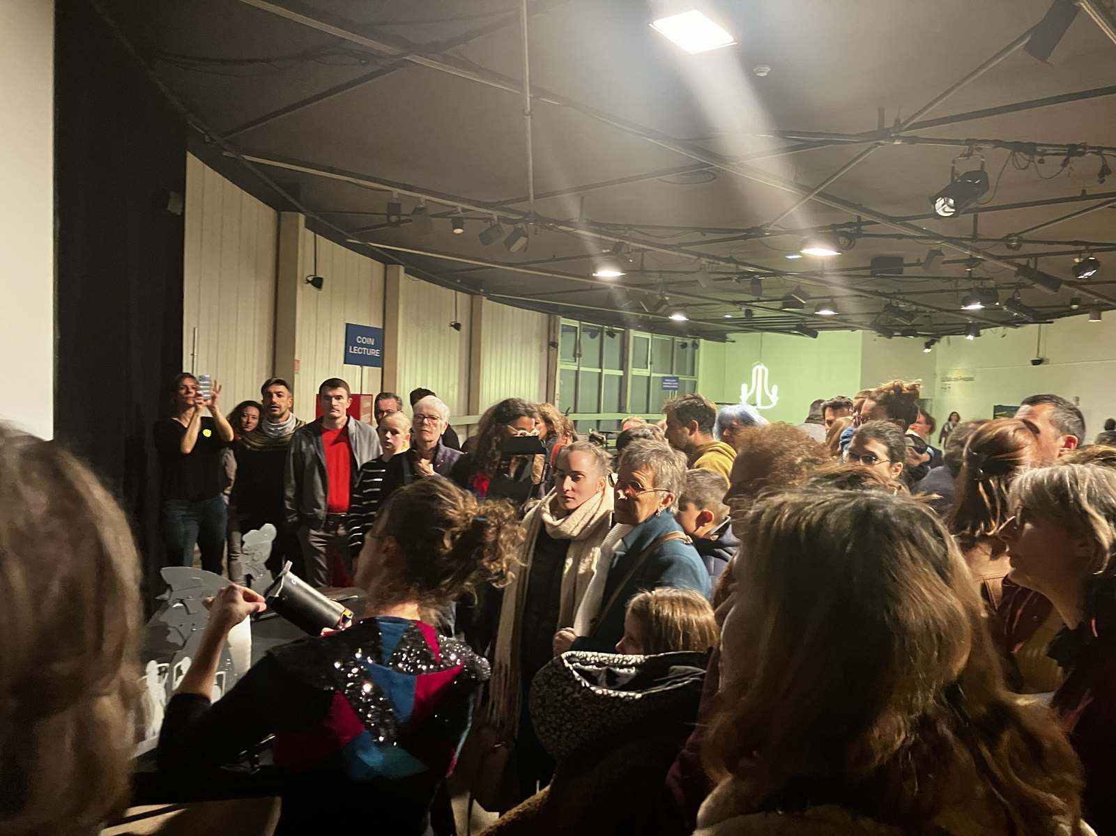 Le spectacle a eu un franc succès, la salle était pleine, et le public s’est levé lors des applaudissements finaux, saluant le travail multiple de la compagnie. S’inscrivant au cœur des enjeux du week-end, la soirée se conclue à l’extérieur de la salle, où les musiciens jouent au plus près du public, tandis qu’une des artistes présente l’un des décors miniatures avec une démonstration de projection.