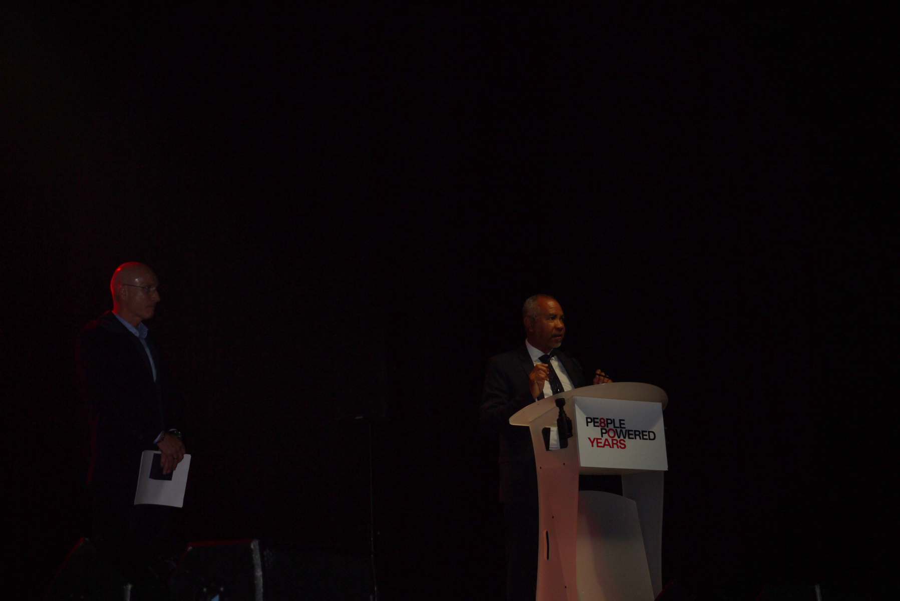 La cérémonie débute après ces discours et remerciements d'introduction. Au total ce sont plus de 80 collaborateurs qui sont récompensés avec 3 distinctions selon le temps de service : la médaille argent pour 20 années, vermeille pour 30 années , or pour 35 années et enfin grand or pour 40 années. La remise des médailles est entrecoupée avec 7 danseurs et 2 chanteuses qui ont vraiment ravis les invités. Des grands classiques anglais et francais et les chansons du moment se succèdent dans des chorégraphies tout en couleur et paillettes. Les artistes interprète avec brillo les différents chanteurs, très cohérent dans leur costumes ou leurs attitudes. La cérémonie reprend avec humour quand au fait de rivaliser sur la danse ou les costumes. L'un des médaillés grand or est ému aux larmes et lors de la dernière vidéo de présentation, les invités frappent avec entrain dans leur mains au rythme de la musique.