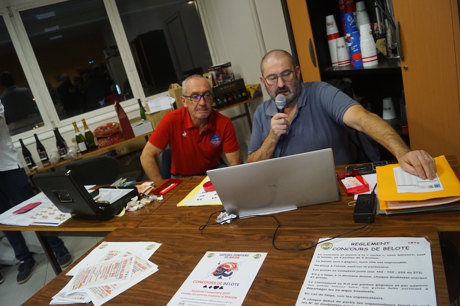 52 doublettes se sont affrontées vendredi soir à la caserne pour le concours de belote organisé par l'amicale des pompiers, présidée par le sergent-chef Julien Polturat, et ouvert aux civils. Un moment bien sympathique avec concentration, plaisir et discipline qui s'est terminé par un repas pris en commun concocté Jean-Claude dans la cuisine de la caserne.