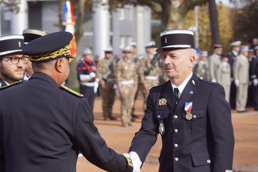 La cérémonie a débuté par le passage en revue des troupes par le lieutenant-colonel Ronan Cottin, délégué départemental militaire, et le colonel Tomica Lukic, commandant du groupement de gendarmerie de Saône-et-Loire. Vinrent ensuite les remises de décorations à quatre militaires : la médaille d’argent des réservistes volontaires de défense et de sécurité intérieure avec agrafe garde nationale au capitaine Pascal Treuillet et au Major Jean Piebourg, réservistes auprès de la délégation militaire départementale ; la médaille de la sécurité intérieure échelon bronze au lieutenant-colonel Eric Balzano, du SDIS 71 et au Major Frédéric Cachenau, commandant le service des affaires immobilières du groupement de gendarmerie de Mâcon.