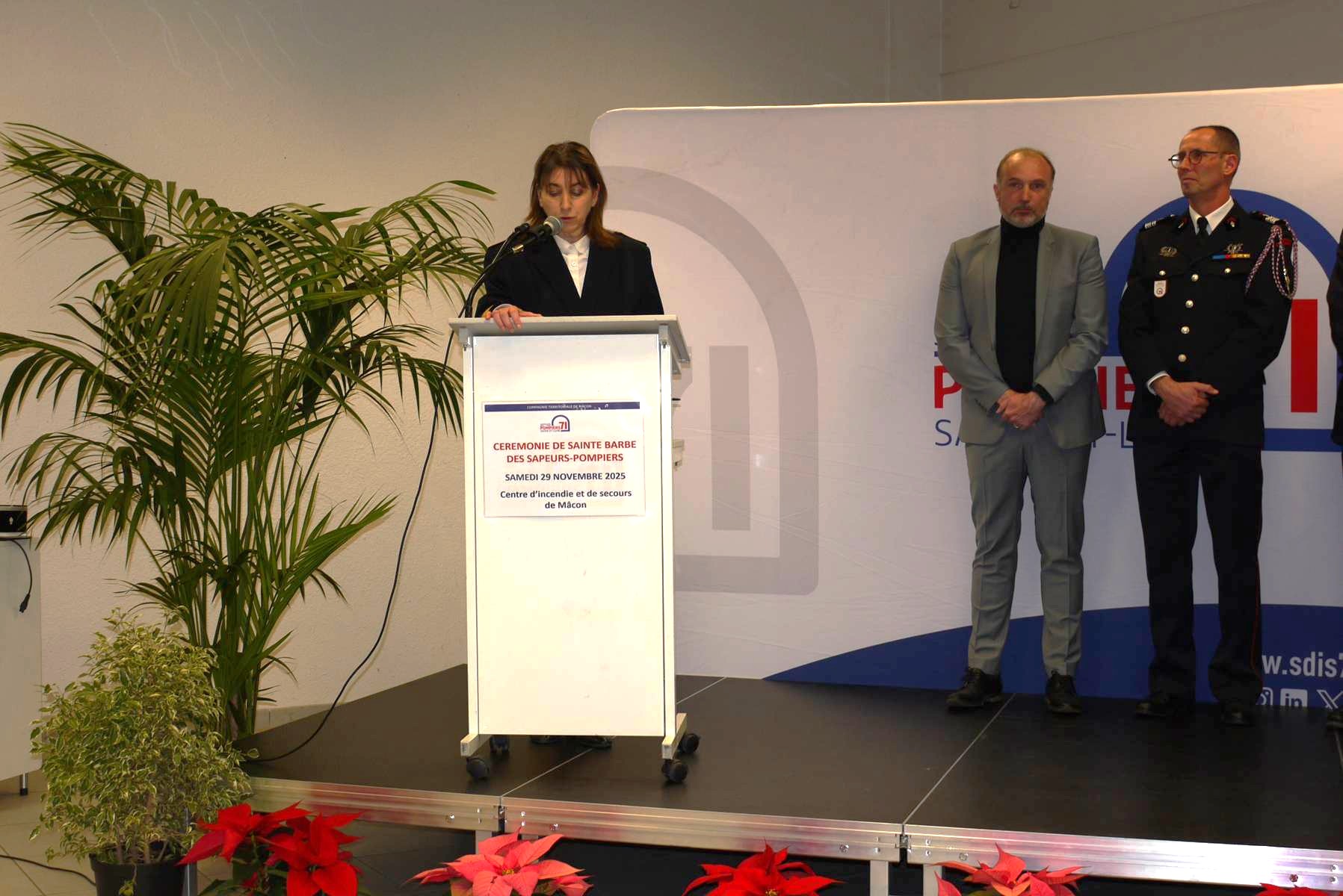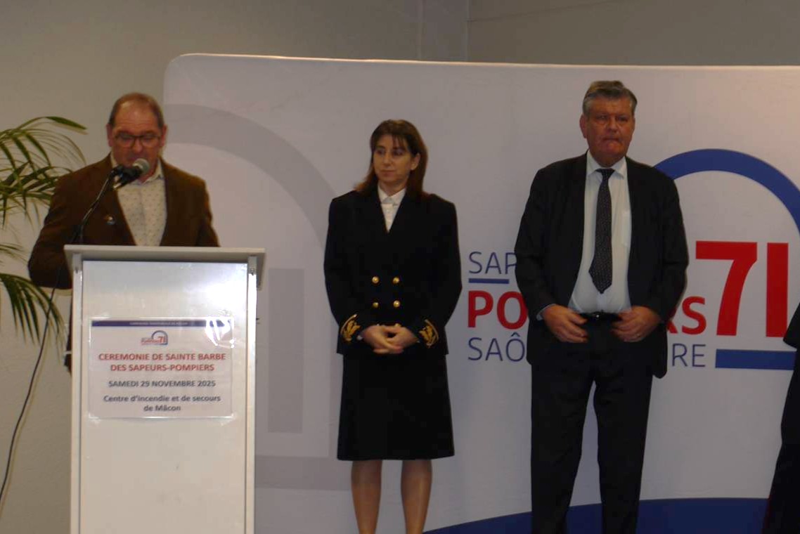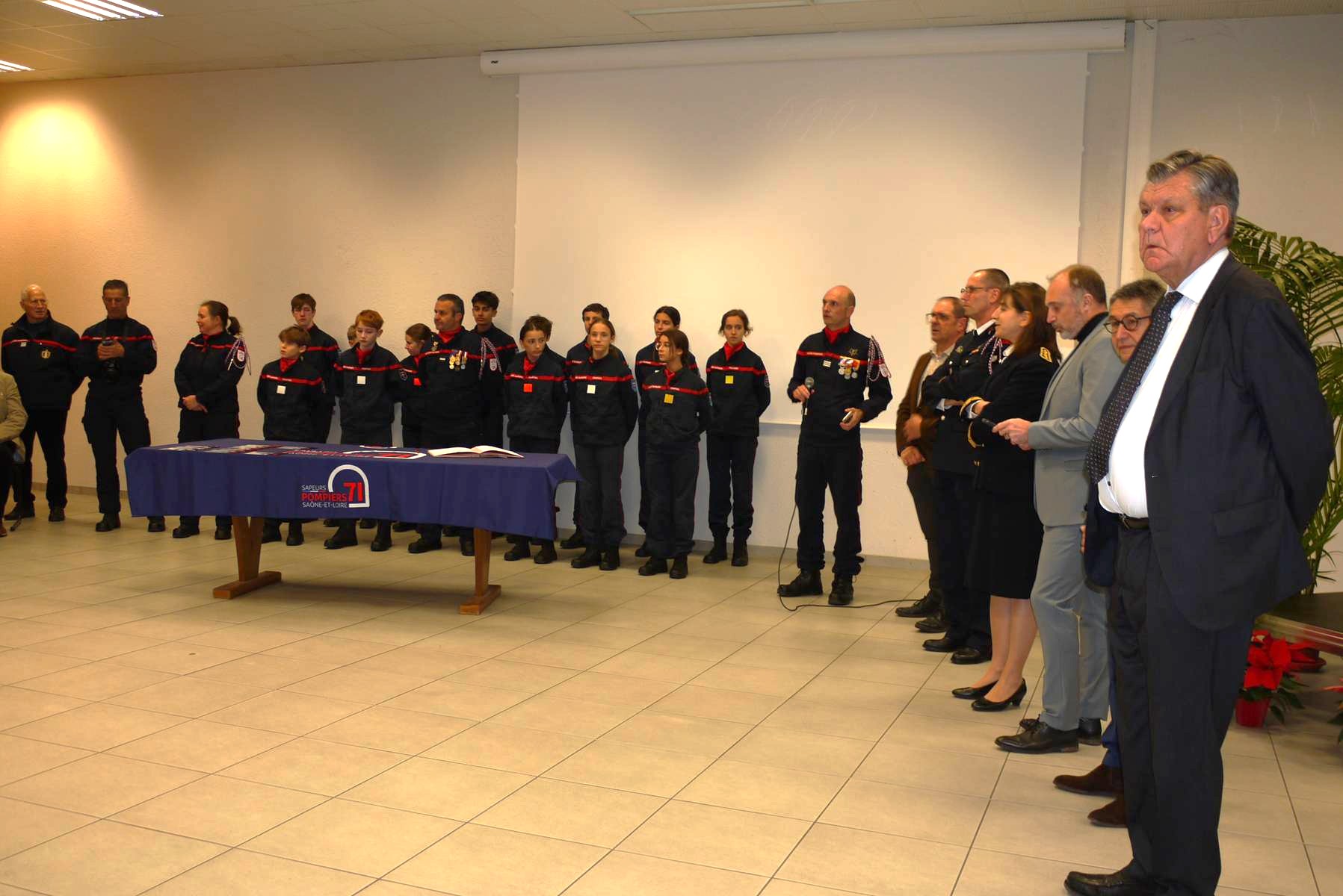 C’est dans un grand sérieux que la cérémonie s’est tout d’abord tenue sur le parking du centre de secours. Les sapeurs-pompiers, en présence de M. le maire Jean-Patrick Courtois ainsi que de la sous-préfète Agnès Chavanon, du maire de Sancé, Gilles Jondet, et du député Benjamin Dirx, se sont placés au garde à vous respectueux, sous les yeux attentifs des familles et amis des professionnels en uniforme. Tous ont été ensuite conviés à se rassembler au sein du bâtiment à l’étage afin d’assister à la remise des médailles et de poursuivre la commémoration.