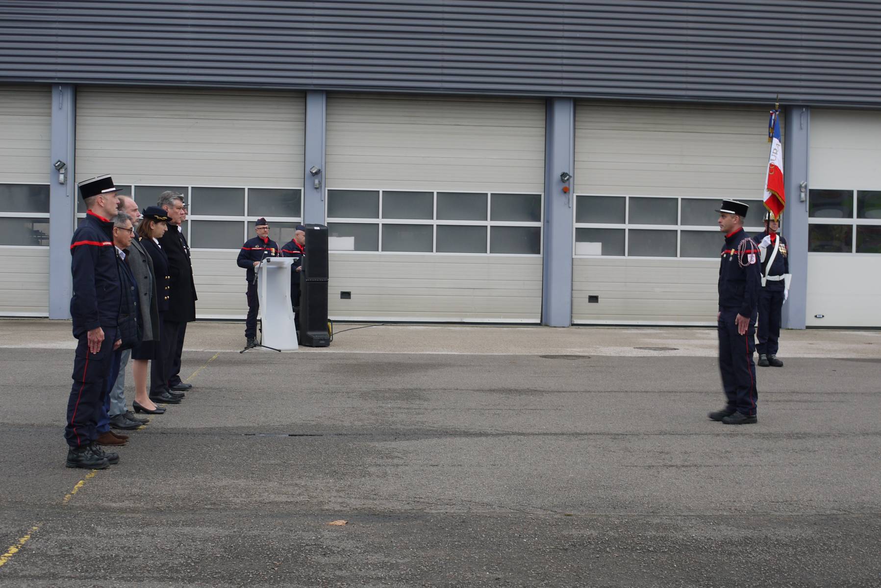 C’est ensuite le chef de centre, le capitaine Romain Comte qui prend la parole, afin de remercier les sapeurs récompensés ce jour, mais aussi de mettre à l’honneur certains pompiers décédés ou blessés, tous ceux ayant fait preuve de courage et de professionnalisme dans leurs missions. Il salue particulièrement la témérité de Maxime Cardi, médaillé d’honneur pour acte de courage, ayant sauvé un homme d’un incendie. « En venant récompenser nos collègues, c’est l’ensemble des sapeurs-pompiers que nous mettons à l’honneur et le pilier fondamental qui nous entoure, nos familles. Notre métier engage bien au-delà de notre vocation, il jonche la vie de nos proches, de sacrifices, d’adaptation mais aussi de fierté. De voir s'accomplir une œuvre collective qui fait cohésion nationale. […] La mémoire n’est finalement pas un devoir, mais bien un état d’esprit, ancré dans notre ADN. […] Si la cause que nous servons ne doit pas faire oublier l’humain qui l’accomplit, il n’en demeure pas moins que ce qui fait votre honneur et fait exemple pour la jeune génération, c’est un seul mot : le sens de l’engagement altruiste. »