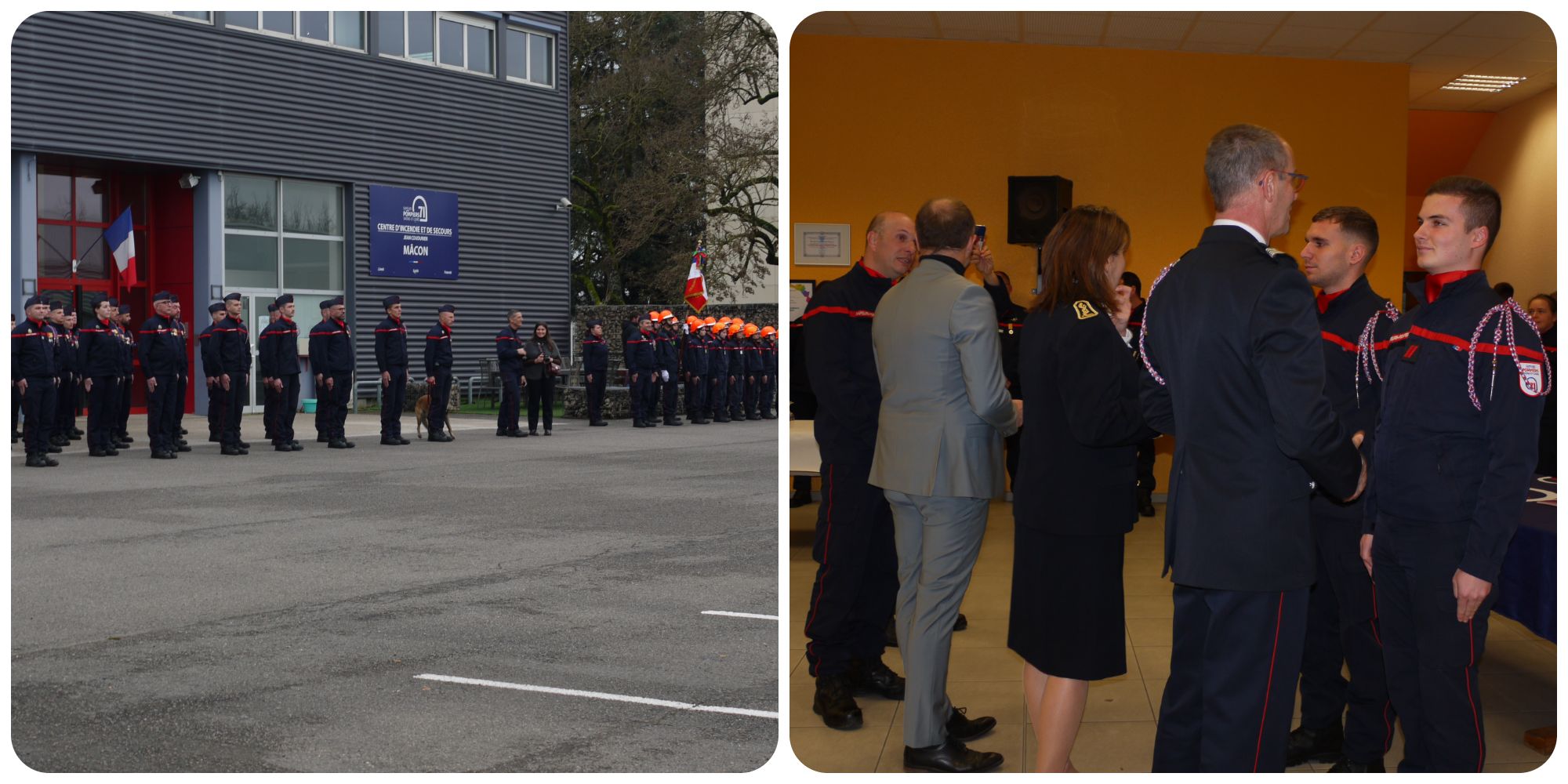 Ce samedi 29 novembre, le Centre d’Incendie et de Secours de Mâcon fêtait la traditionnelle Sainte-Barbe, consacrée à Barbara d'Héliopolis, dite patronne des sapeurs-pompiers. Après la cérémonie, cette après-midi était aussi l’occasion de féliciter et récompenser certains sapeurs et de revenir sur l’année écoulée.
