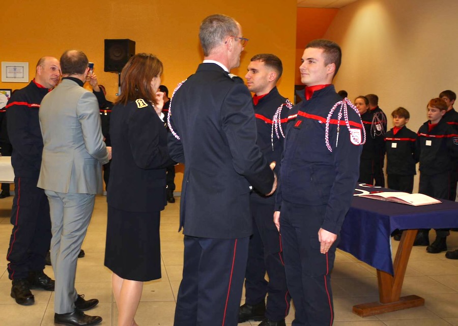 De nombreux autres pompiers ont pu recevoir leur nouveau grade. Un drapeau du Souvenir français a également été remis aux jeunes sapeurs-pompiers. « Ce drapeau, fort en symbole et en engagement, représente le lien entre nos générations, la transmission de nos valeurs, et le devoir de mémoire que nous partageons. En acceptant ce drapeau, vous affirmez votre attachement à notre histoire, notre pays et à ceux qui ont donné leur vie pour la France » met à l’honneur Denis Gatheron, délégué général du Souvenir Français.