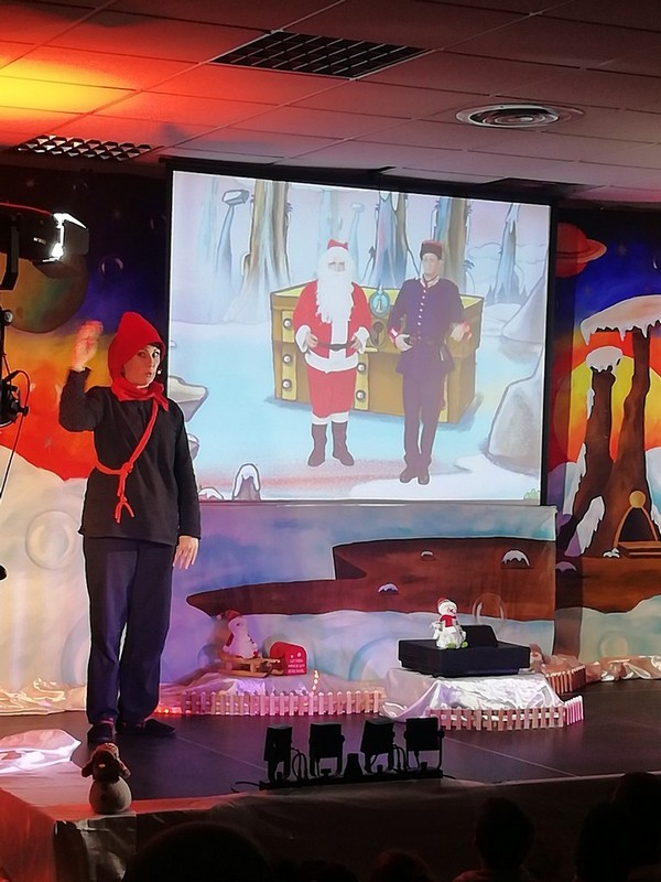 Impatients, les enfants se sont assis devant la scène, écoutant le mot d'accueil de Patrick Guilbert, responsable du territoire Marbé Perrières. Leur souhaitant de s'émerveiller au cours de cette représentation, dont l'idée était de « partir en voyage », mais surtout de ramoner toutes les cheminées avant le passage du Père Noêl. Il a laissé très vite place aux comédiens, petits ramoneurs pour l'occasion. À différents moments de la représentation, les enfants ont été invités à intervenir, en imitant avec enthousiasme les gestes de la comédienne. Les enfants se sont laissé embarquer dans cette atmosphère féerique.