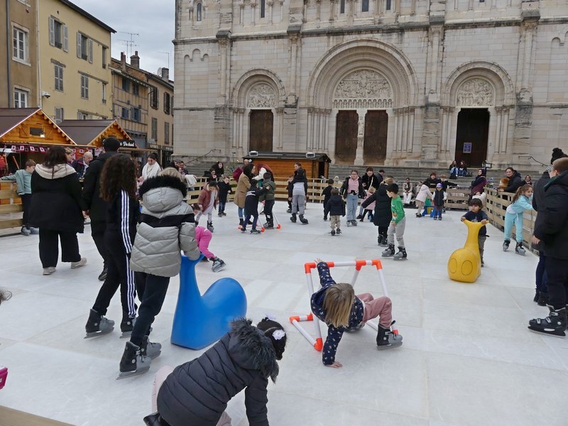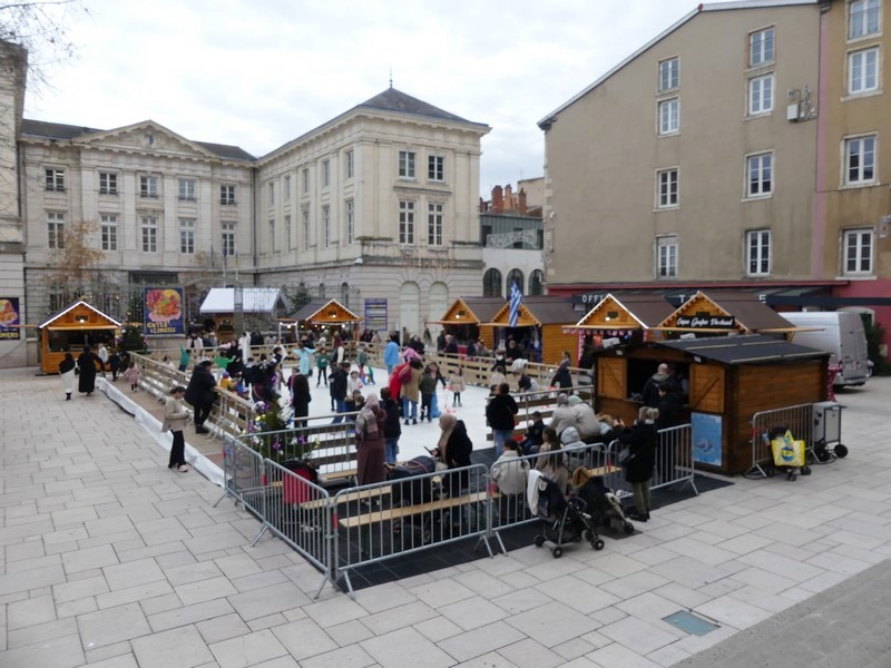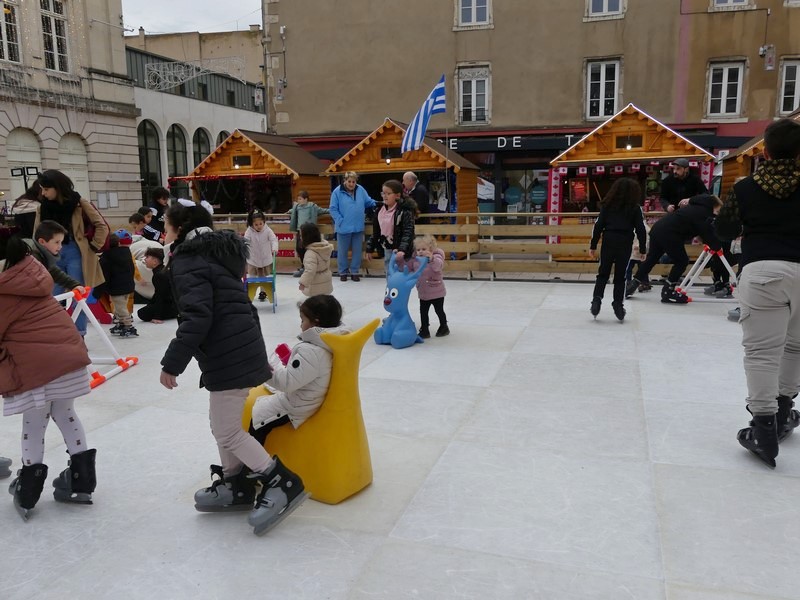 Implantée place Saint-Pierre au milieu des chalets du marché de Noël, cette patinoire synthétique éphémère de 150 m² est particulièrement adaptée aux familles.