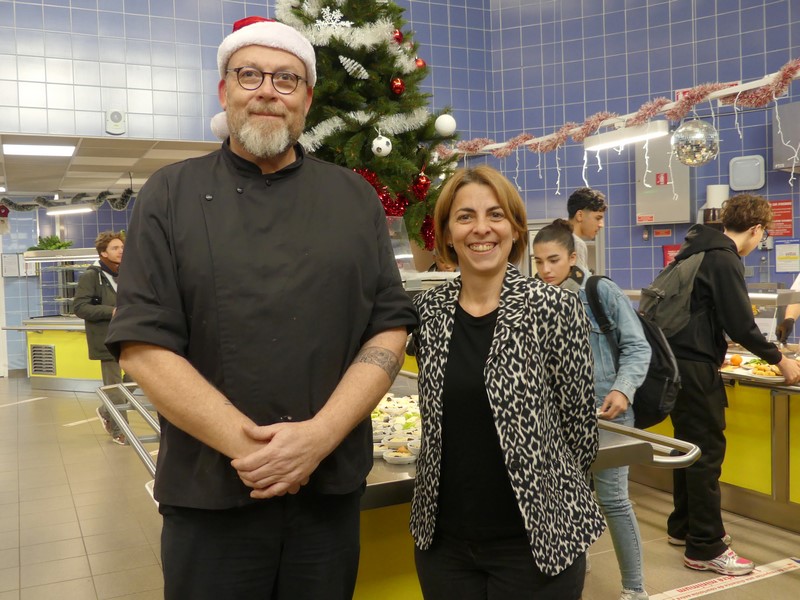 et particulièrement aujourd'hui, l'équipe de M. besson qui prépare 1 100 repas chaque midi et 200 repas chaque soir pour les élèves et les commensaux du lycée Cassin et du lycée Dumaine.