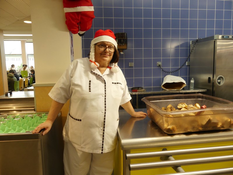 La qualité est reconnue au quotidien mais pour ce repas festif, c'est toute l'équipe qui a cuisiné depuis 5 heures ce matin, sans compter les préparations depuis plusieurs jours, pour offrir un repas d'excellence « fait maison ». Plus de 1 100 desserts ont également été préparés.