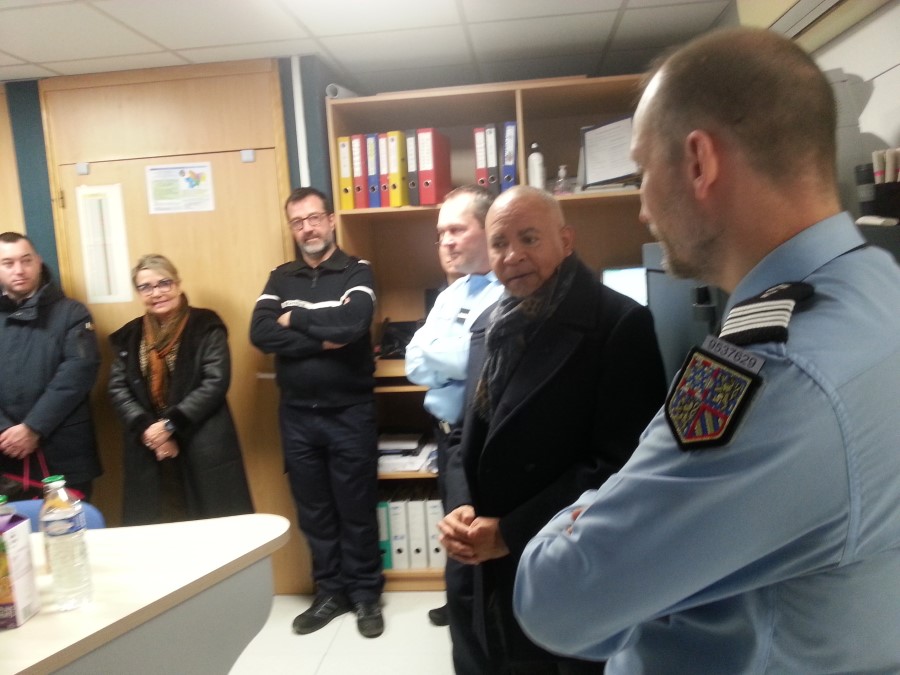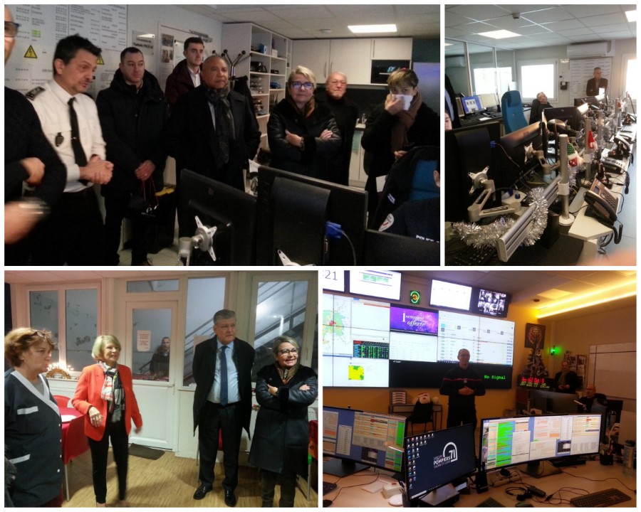 A 18h30, les élus et le préfet ont été reçus par le colonel Lukic Tomica, commandant du groupement de gendarmerie de Saône-et-Loire, au centre d'opération et de renseignement de la gendarmerie (CORG 71). Ce centre installé à Charnay gère 110000 appels par an. 20 % des appels se traduisent par une intervention de la gendarmerie (qui couvre 97% des communes du département, soit 347000 habitants). Ce soir, 4 opérateurs assureront la permanence au CORG et s'attendent à tout type de situation au cours de la nuit.