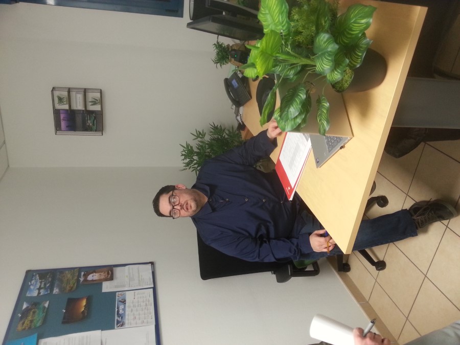 Cyril Urvoy s'occupe des demandes d'appel pour un hébergement au service d'accueil de l'association Le Pont