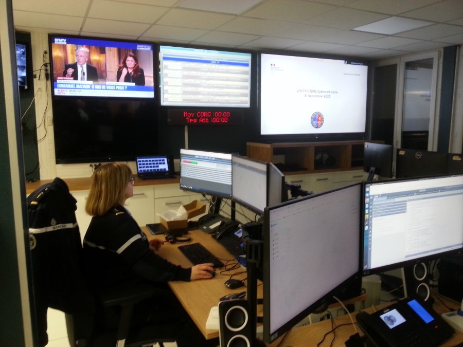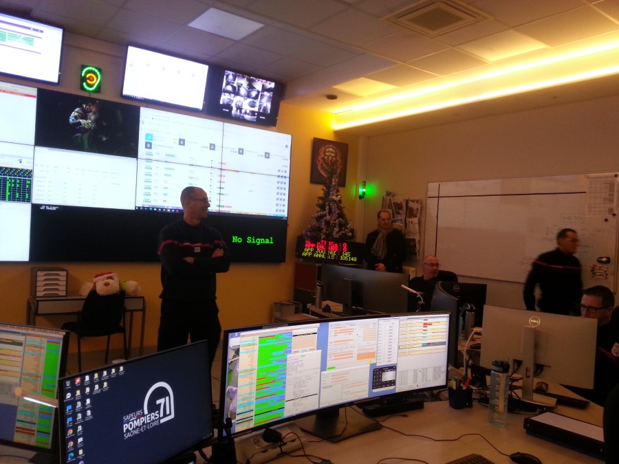 Le directeur départemental adjoint du SDIS 71, le colonel Emmanuel Vidal, a ensuite présenté pour une dernière fois le salle du centre opérationnel des sapeurs-pompiers de Saône-et-Loire (CTA-CODIS) avant l'installation d'un nouvel outil numérique operationnel en septembre 2026. Ce soir, la permanence au CTA-CODIS sera assurée par l'officier commandant Frédéric Tisserant, un chef de salle opérationnelle et 4 opérateus de salle, ce qui est le dispositif standard toute l'année. Cette nuit, 500 pompiers seront disponibles dans les 9 casernes de Saône-et-Loire en garde (300 autres pompiers d'astreinte sont mobilisables).