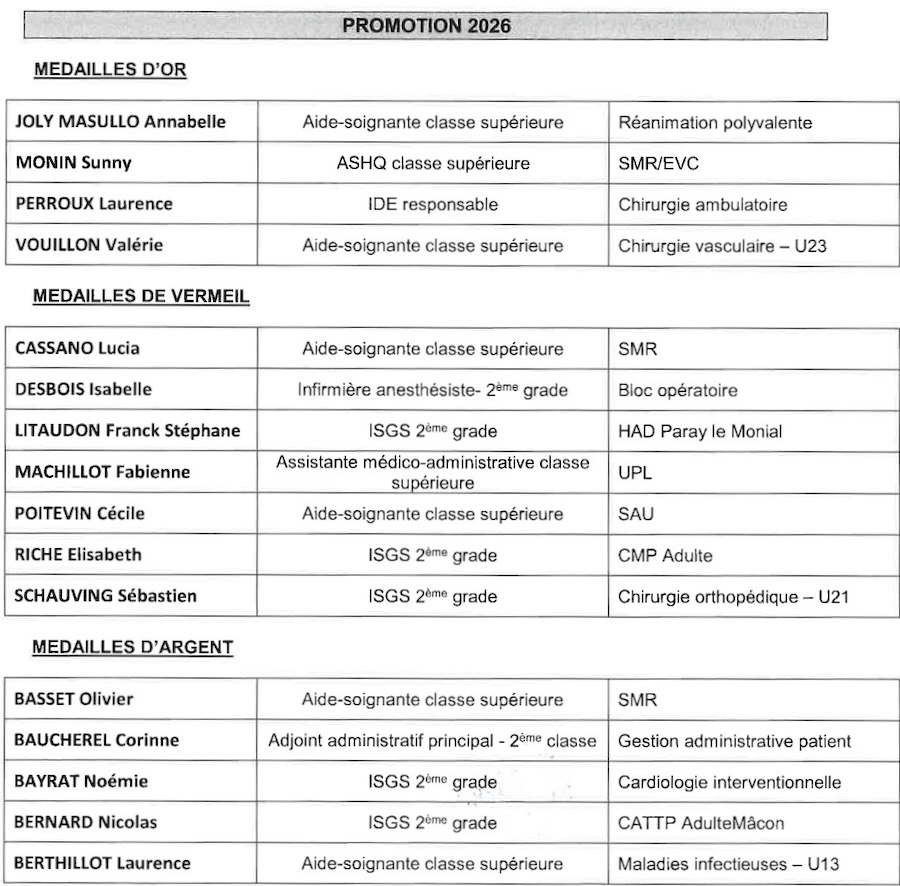 43 médaillés du travail et 38 départs en retraite ont été fêtés ce lundi 12 janvier 2026 à l'hôpital. Au-delà de la dimension officielle de la cérémonie des voeux et remise de médailles, cette soirée fut aussi l’occasion pour les agents de se retrouver dans une autre ambiance et partager un moment convivial entre collègues et cadres.