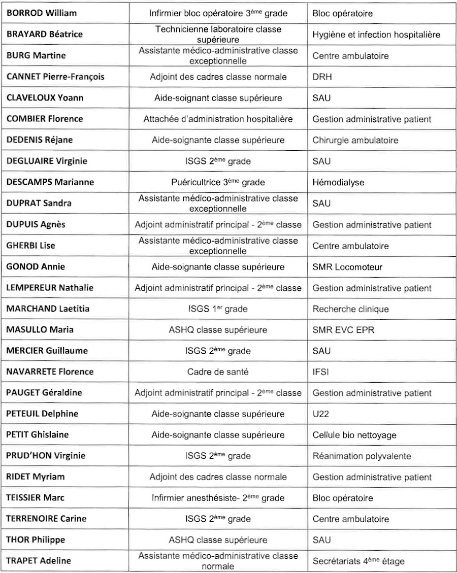 Même tonalité dans l’intervention de David Clair, qui dessina un hôpital comme : « lieu d’excellence et de bienveillance proposant innovation pour des soins de qualité. Même s’il y a des moments de tensions, nous vivons des relations de qualité et de grande humanité. »