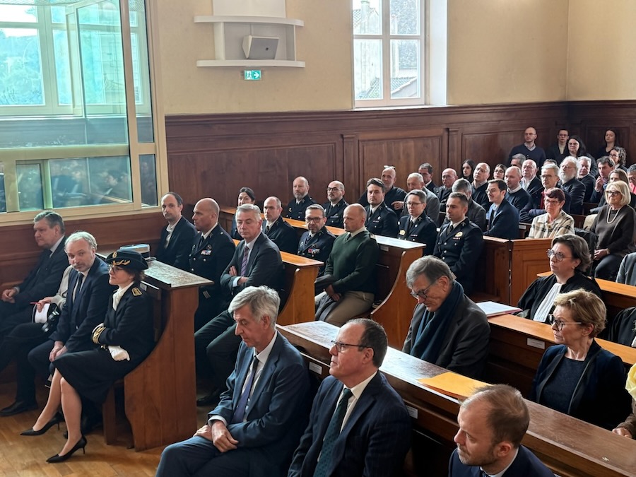 Autour de la présidente du tribunal Marion Goddier et de la procureure de la République Anne-Lise Furstoss, la grande salle d’audience était comble. Représentants des forces de l’ordre, magistrats, personnels de greffe, avocats du barreau de Mâcon, élus locaux, partenaires associatifs, experts judiciaires et acteurs institutionnels avaient répondu présents. Au premier rang figuraient notamment le maire de Mâcon Jean-Patrick Courtois, le député Benjamin Dirx, la sénatrice Paulette Matray et la secrétaire générale de la sous-préfecture, Flora Séguin.