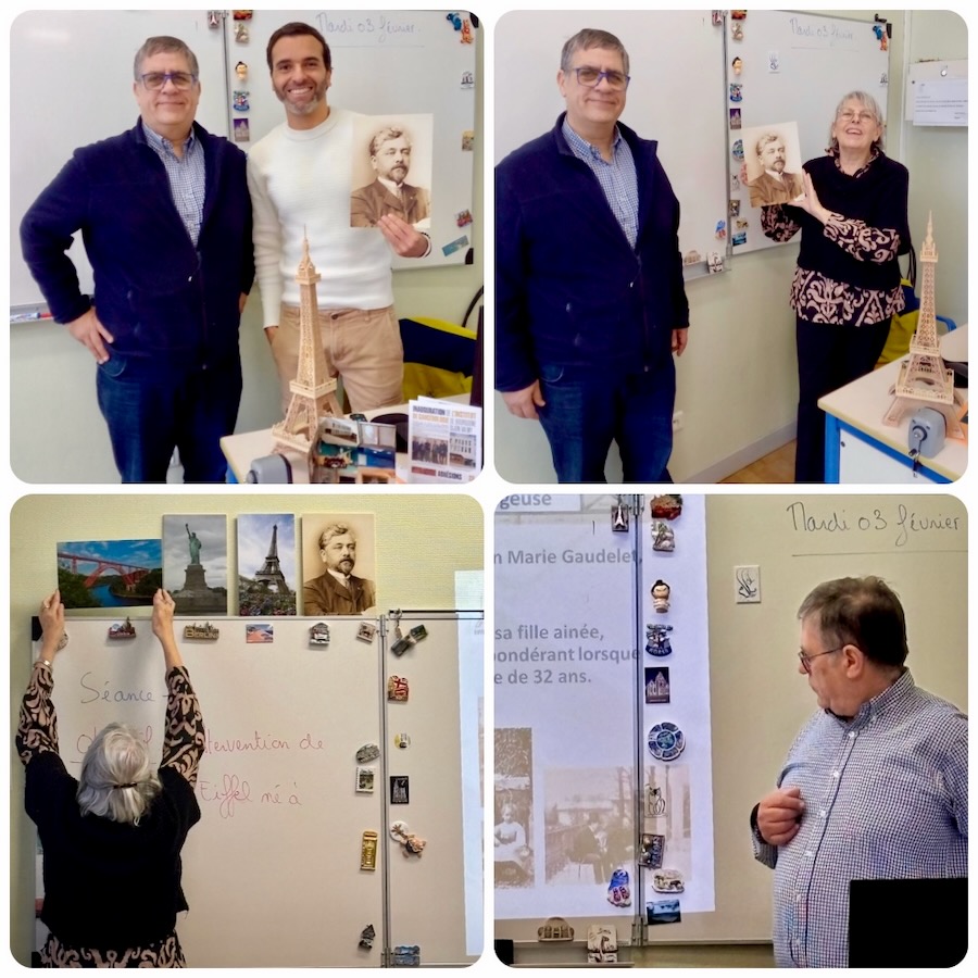 Ce mardi 3 février 2026, les élèves de quatrième du collège Bréart (Mâcon) ont pu découvrir les multiples facettes de Gustave Eiffel grâce à Monsieur Benoît Vervandier, président de l’Association « Eiffel né à Dijon » (créée en 2018), accompagné de Madame Michelle Bransolle, fondatrice et vice-présidente de la structure, qui mène des actions variées afin de préserver la mémoire et les réalisations de l’ingénieur dijonnais. Outre la Dame de Fer, plusieurs œuvres ont été exposées : le pont de Garabit (département du Cantal), la coupole de l’Observatoire de Nice ou encore la Statue de la Liberté à New York.
