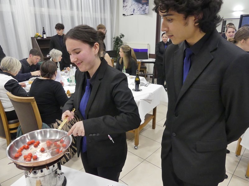 Ces jeunes en formation Baccalauréat professionnel hôtellerie-restauration, Métiers de l’accueil et métiers du commerce ont bénéficié d’une initiation en Anglais professionnel en classe de seconde. En première, ils suivent une partie de la formation professionnelle en Anglais et profitent de cours d’Anglais renforcés ( section européenne).