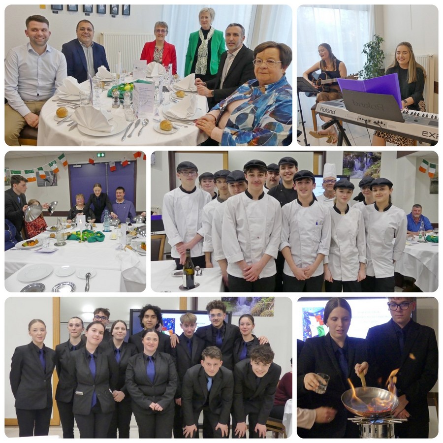 Une soirée très chaleureuse et festive autour d'un savoureux repas gastronomique concocté par les élèves et agrémenté d'un duo de musique irlandais avec chant et guitare qui a enchanté tous les invité.es.
