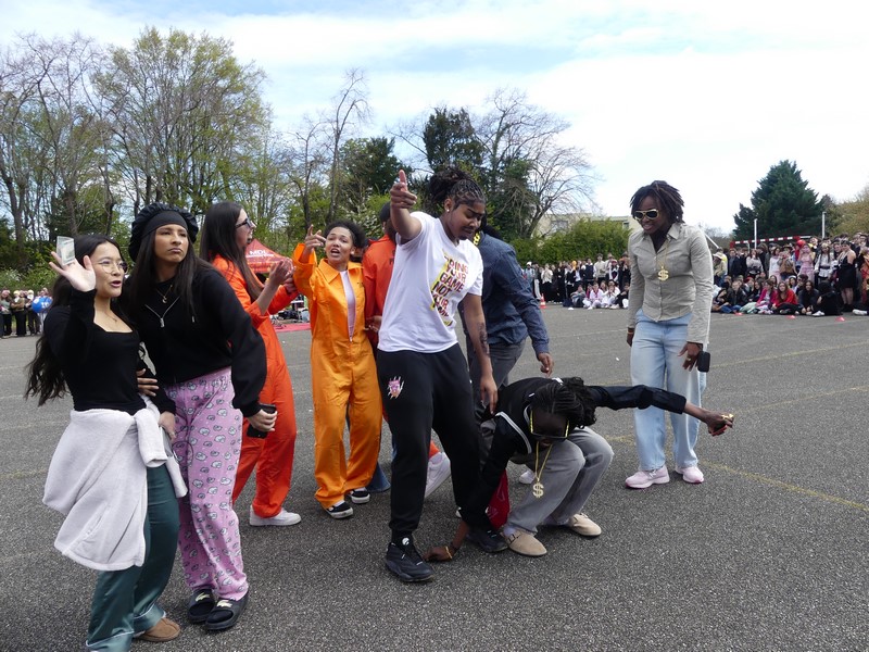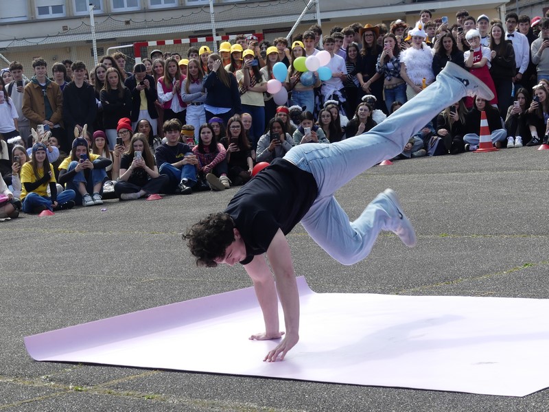 Une superbe chorégraphie des professeur.es du lycée a permis de faire patienter les spectateurs dans une ambiance électrique le temps de la délibération du jury.