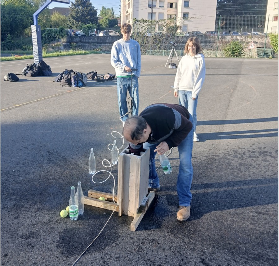Durant la matinée du jeudi 23 avril, les troisièmes du Collège Bréart ont assisté au décollage de fusées à propulsion. Monsieur Philippe Morize (co-président d’AstroSaône de Charnay-les-Mâcon) a expliqué le fonctionnement du lancement :
