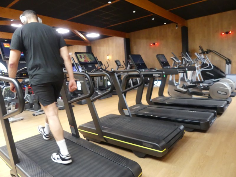 La salle de sport est très accueillante, spacieuse et lumineuse avec une hauteur de plafond de 8 mètres, des écrans de télévision au mur, tout est conçu pour se sentir à l'aise. "Ici, on respire d'où l'enseigne Oxygène", nous explique Sali.