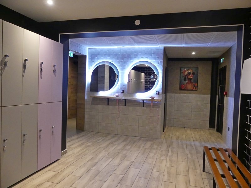 Au sol, des tapis anti choc et anti dérapant. Au rez-de-chaussées, les douches et les vestiaires avec casier. Il faut penser à amener un cadenas. Un espace pour prendre son repas. Une fontaine à eau, une machine à café et un distributeur de boissons seront installés à partir du lundi 26 janvier. Tous les appareils dédiés à la musculation des différentes parties du corps avec haltères et autres technologies. À l'étage, deux grandes salles disposant de tous types de vélos pour bras, jambes, station debout, et bien d'autres parties du corps, escalier et tapis de marche à élévation. Au fond, une petite salle d'abdo et un espace de coaching individuel (actuellement en cours d'installation).
