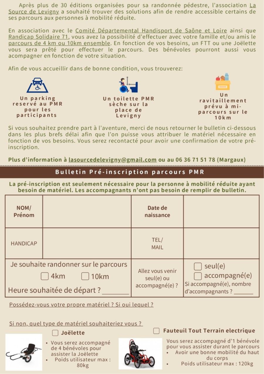 L’association La Source de Levigny, forte d’une longue expérience dans l’organisation de marches nature, fait évoluer son événement annuel en mettant l’accent sur l’accessibilité. Pour cette nouvelle édition, elle propose une formule permettant aux personnes à mobilité réduite de participer pleinement à cette journée conviviale du 8 mai prochain.