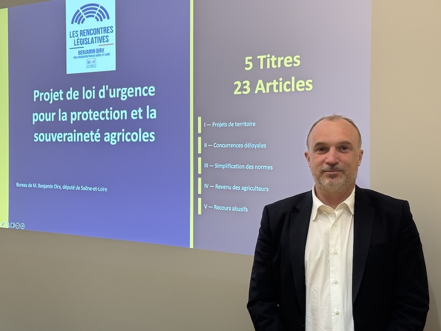 À l’approche de l’examen en commission le 28 avril du projet de loi d’urgence pour la protection et la souveraineté agricoles, Benjamin Dirx, le député du Mâconnais-Clunisois, a réuni les représentants de la FDSEA et des Jeunes Agriculteurs.