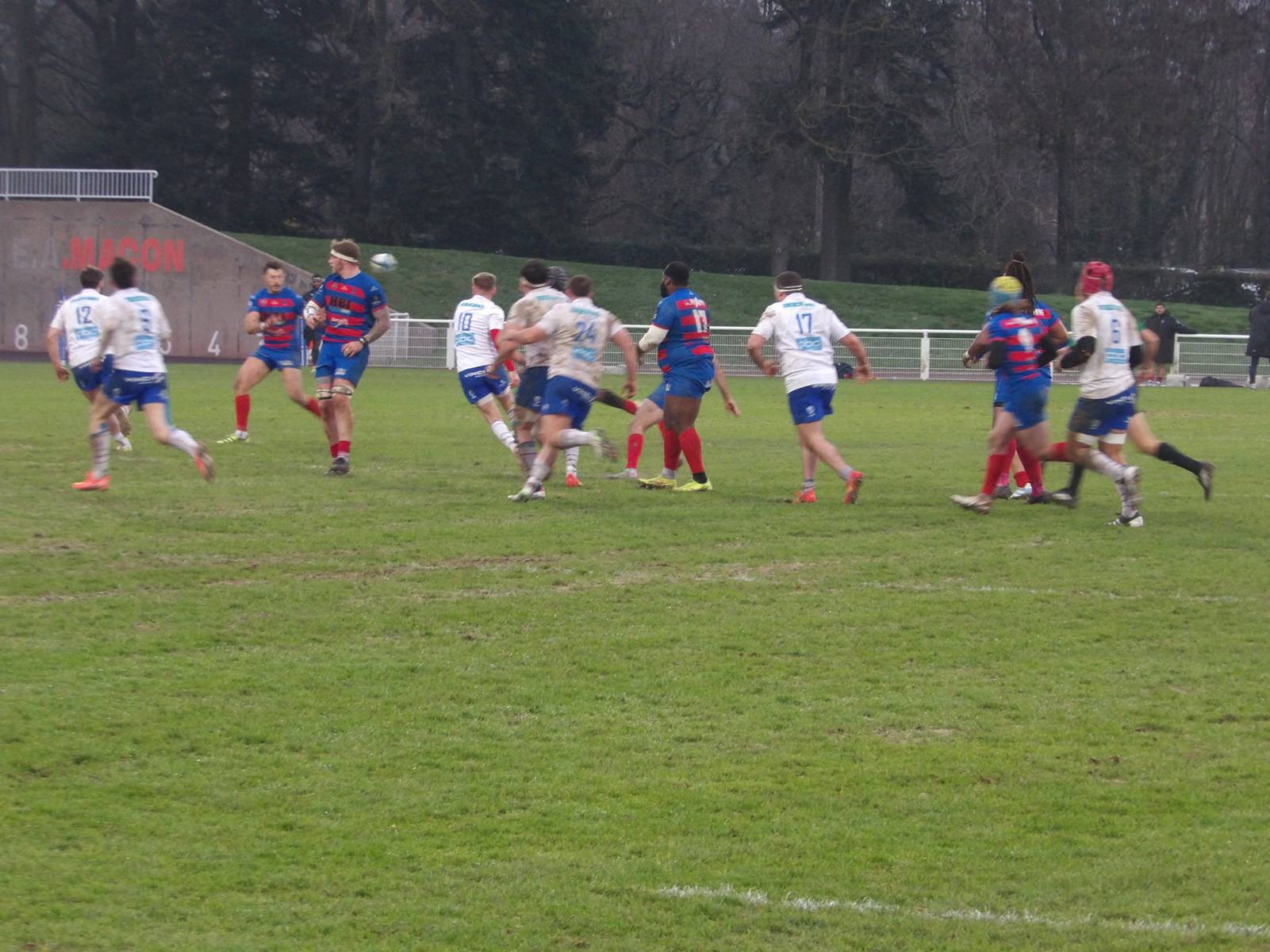 Mâcon n'était pas à l'abri et continuait à pousser avec son pack d'avant. A la 74eme minute, l'AS Mâcon marquait son 2ème essai suite à une percée dans les 5 derniers mètres. Grâce à la transformation de Florian Lavaux, les Rouges et Bleus portaient le score à 24-10.