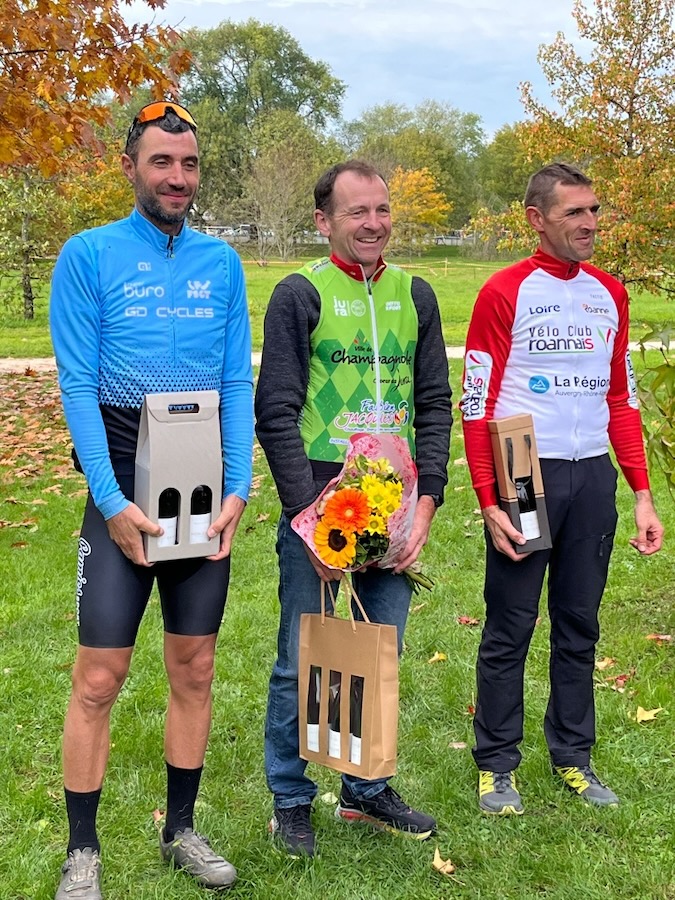 Saint André d'Huiriat - CLM et Gentleman qui clôture la saison 2025. Le Flacéen Dominique Bruillot prend la 64ème place au scratch à 35,84 km/h et la 10ème dans sa cat.