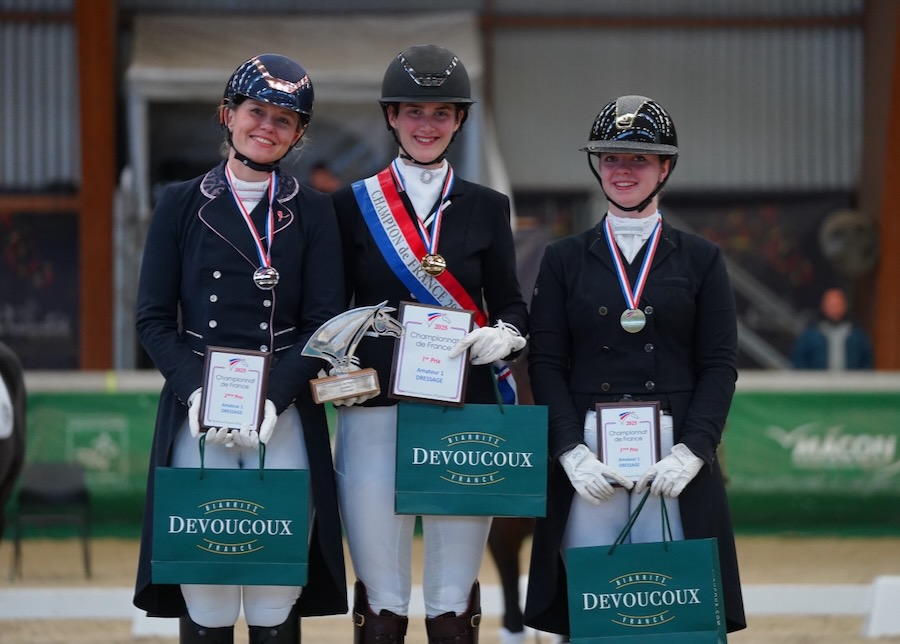 Dimanche, toujours à Mâcon Chaintré, les Championnats de France des AS et Amateurs de dressage ont sacré les derniers champions de France 2025. Léa Siccardi chez les Amateurs 2 Séniors, Mado Pinto chez les Pro Jeunes Séniors, Auriane Delannoye en Amateurs 3 séniors, le double sacre de Shanice Salvador.