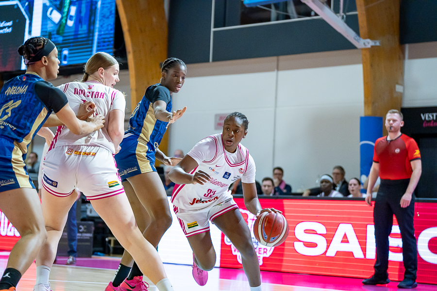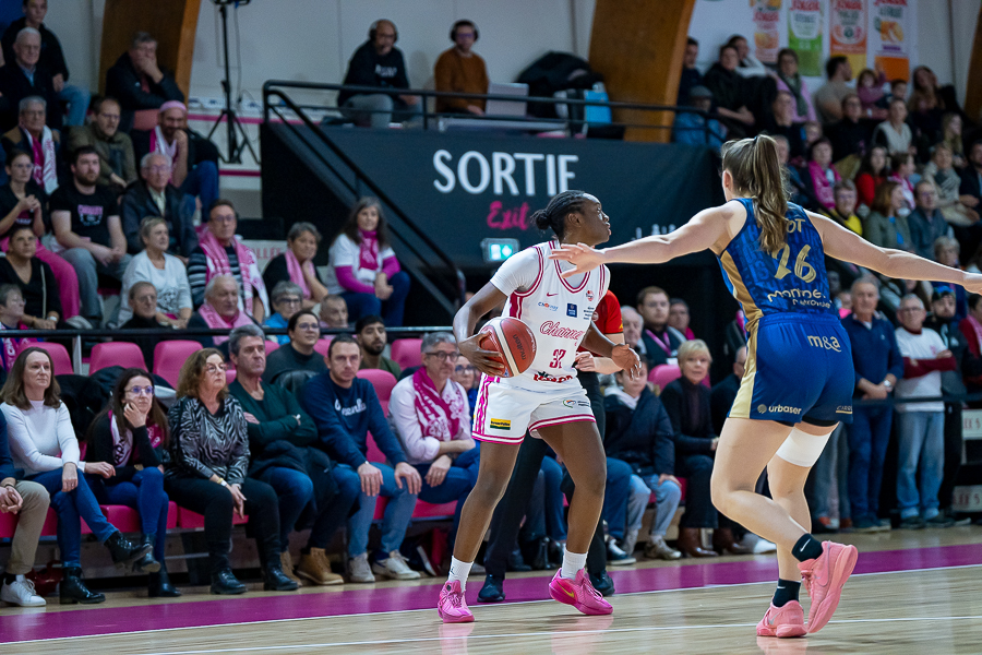 Les charnaysiennes passent à côté du premier quart temps, de quoi rendre fou de rage leur coach Stéphane Leite qui hausse le ton après 10 minutes, 12-21. Coup de colère judicieux puisque les pinkies se réveillent et montrent une belle détermination dans ce 2ème quart temps. Elles prennent l’avantage et mènent 39-34 à la mi-temps.