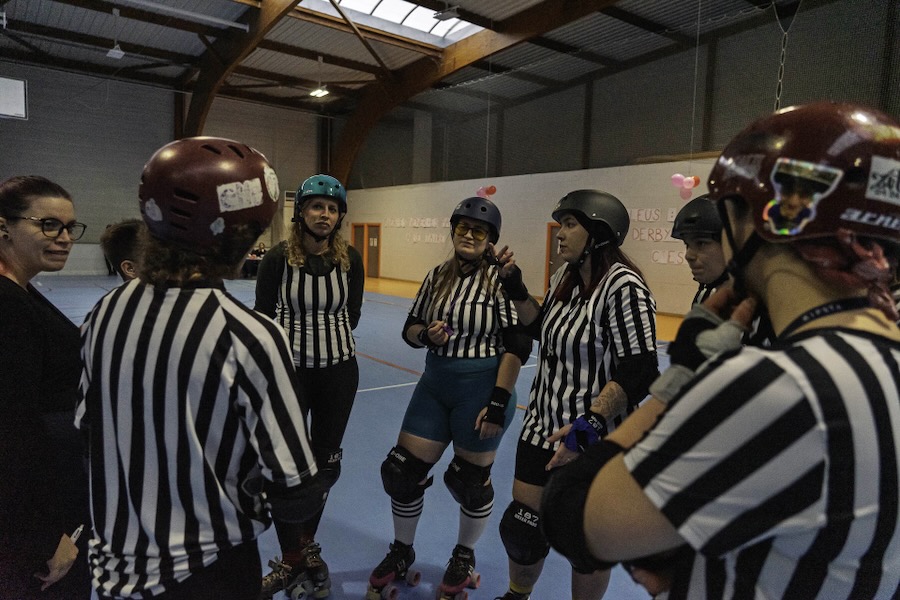 Chaque équipe comprend 15 joueurs.ses, dont seulement 5 sont sur la piste pour un Jam, il y a 1 jammer, reconnaissable à l’étoile ornant son casque et 4 blockers.
