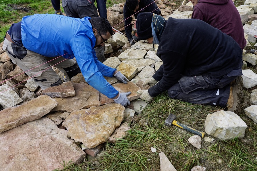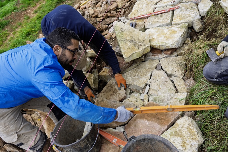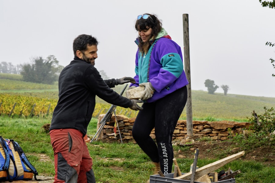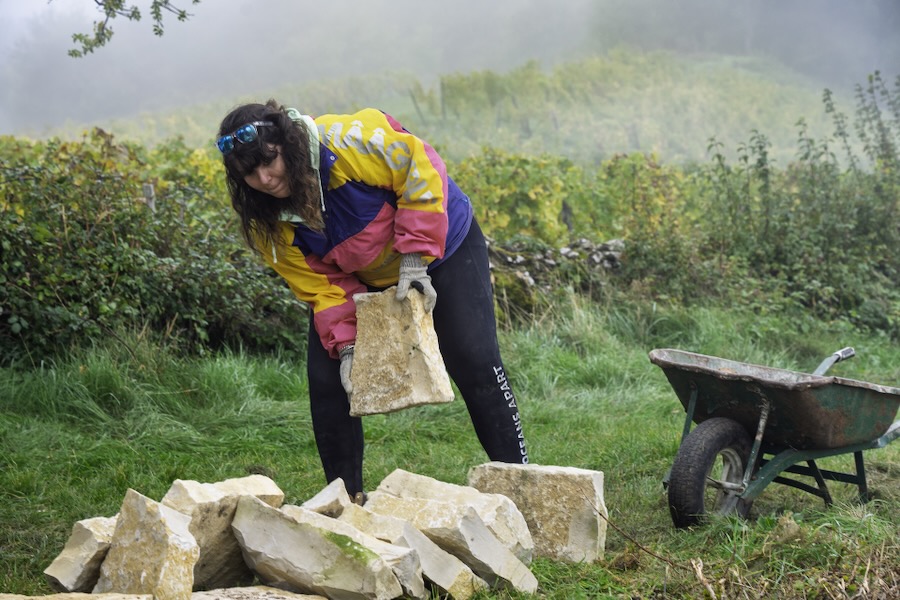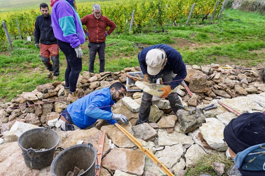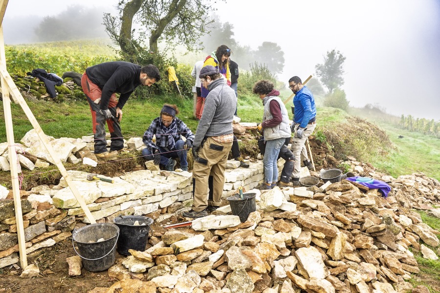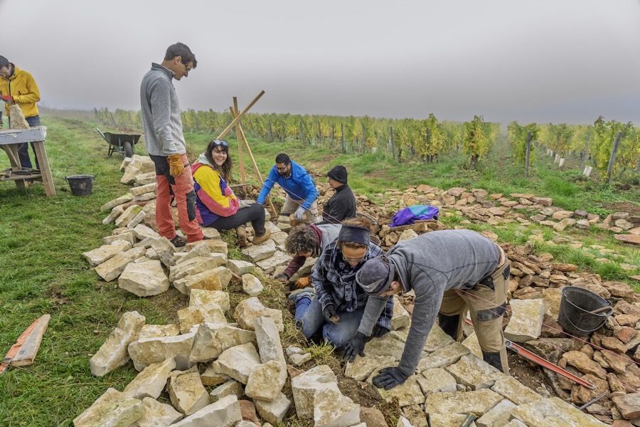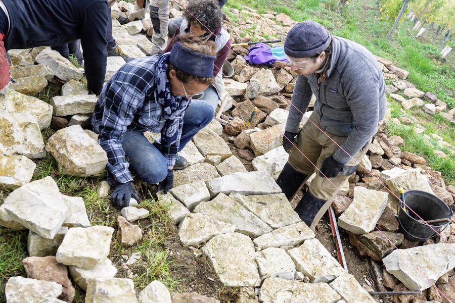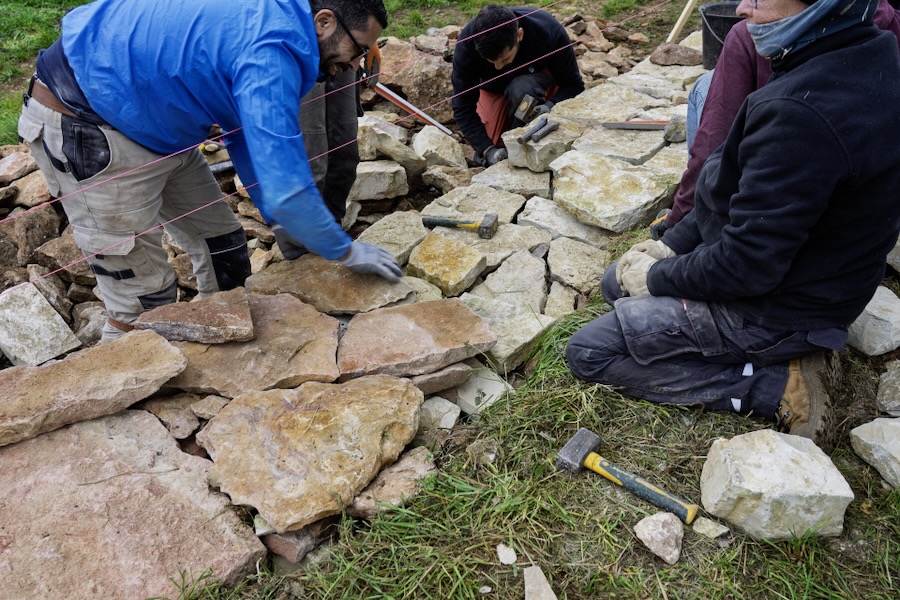 Nous devons parfois avoir recours à des prestataires extérieurs pour intervenir sur des chantiers plus conséquents pour lesquels les normes de sécurité nécessitent que ce soit fait par un professionnel apte à engager sa responsabilité. Par exemple, à Vergisson, nous avons eu recours à une équipe de professionnels de la pierre sèche, c’était un gros chantier qui a duré plus d’un mois, entre les études de sol et le travail proprement dit. »
