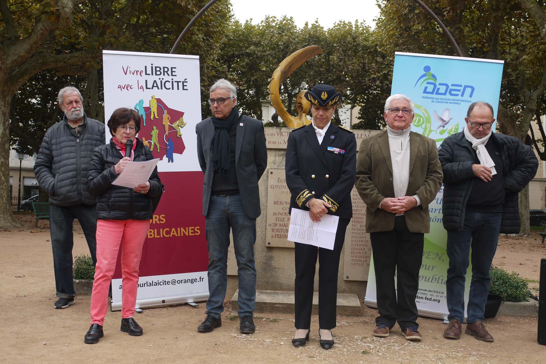 « Parce qu’ils étaient professeurs, ce nécessaire temps d’hommage solennel doit être accompagné et précédé de réflexions afin d’impulser une pratique de la citoyenneté et une compréhension de la laïcité » ajoutait la représentante des DDEN.