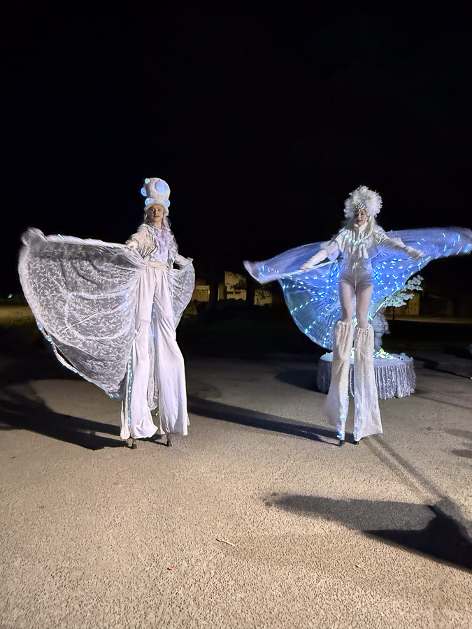La soirée a été rythmée par les déambulations féeriques de la troupe Abrac'Echass, avec leurs personnages en échasses et costumes lumineux, émerveillant petits et grands. Autre moment fort : l’énergie communicative des percussions africaines, qui ont fait vibrer l’espace dans une ambiance festive et colorée.