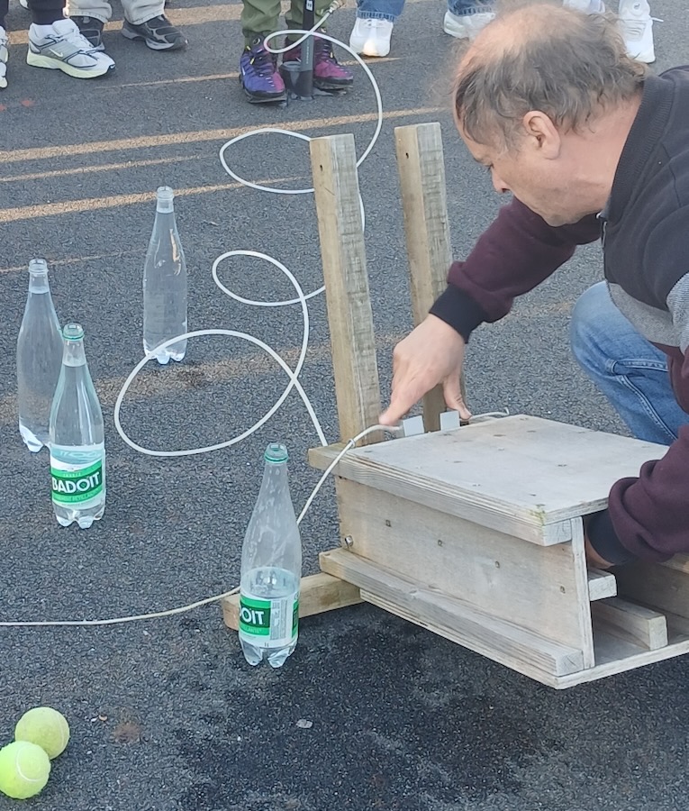 Durant la matinée du jeudi 23 avril, les troisièmes du Collège Bréart ont assisté au décollage de fusées à propulsion. Monsieur Philippe Morize (co-président d’AstroSaône de Charnay-les-Mâcon) a expliqué le fonctionnement du lancement :