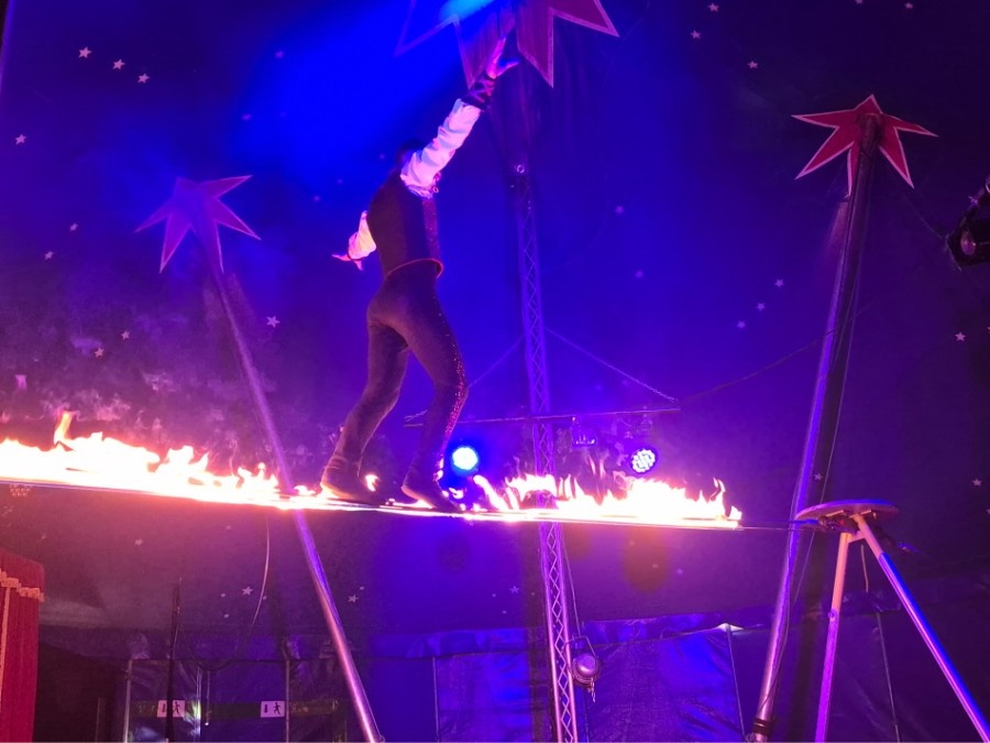 Équilibrisme, jonglage, chaînes aériennes, cerceau aérien, numéros de clown, danse, claquettes, batterie, guitare, breakdance, hip-hop, tir à l’arbalète, funambulisme, fil-de-férisme, jeu d’acteur, magie, monocycle ou encore rola-bola : pendant près de deux heures trente, la piste du cirque de la Compagnie Tempo s’est transformée en un véritable feu d’artifice de disciplines, aussi exigeantes physiquement qu’éblouissantes pour les yeux.