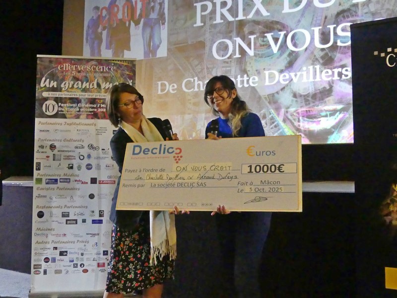 Isabelle Paupy de la Société Déclic a remis le Prix du Public d'une valeur de 1000 euros au film belge « On vous croit » de Charlotte Devillers et Arnaud Dufeys qui sortira en salles le 12 novembre.