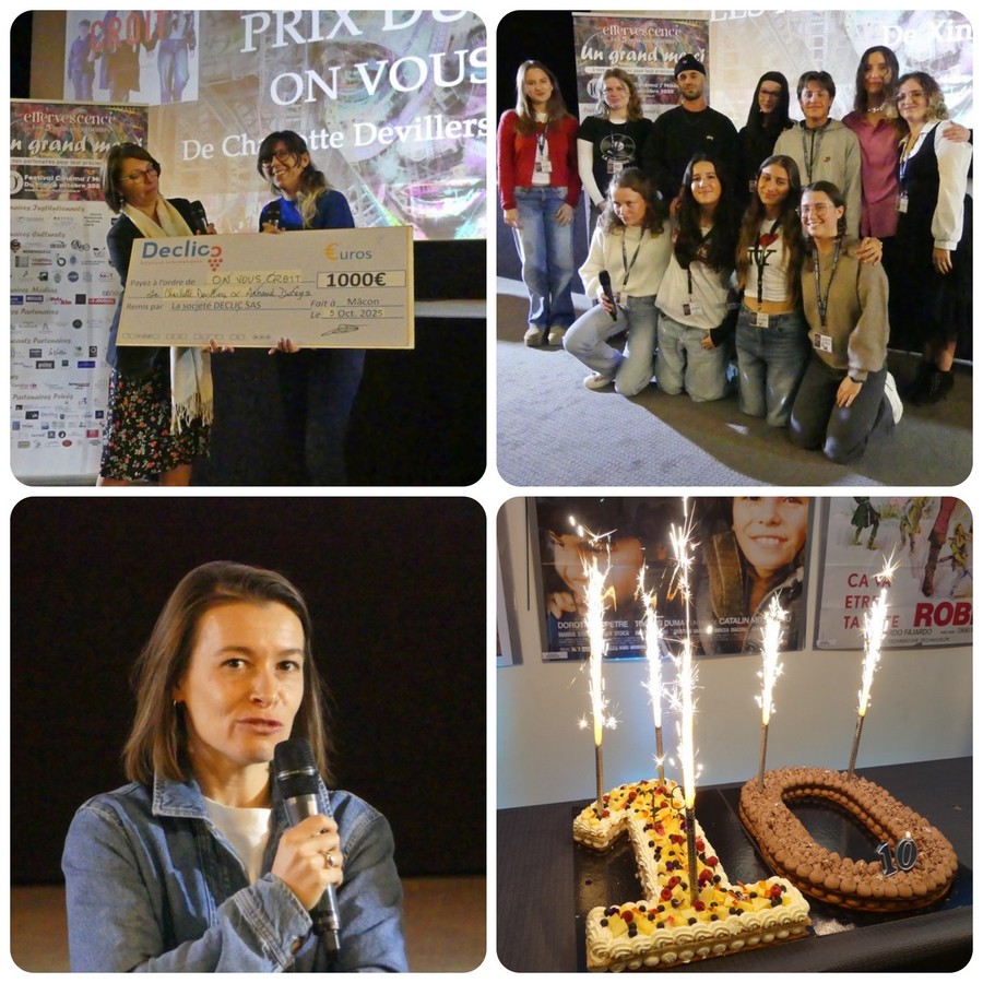 Cette année, le jury du festival présidé par la comédienne Amel Charif et le cinéaste Antoine Besse était composé de neuf lycéen.nes des options Cinéma des lycées Ozanam et Cassin de la ville de Mâcon. Le jury a visionné pendant trois jours, neuf films signés par de jeunes réalisateurs et projetés en avant-première.