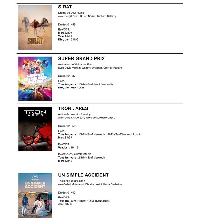 Veuillez trouver ci-joint le programme du 15 octobre au 21 octobre 2025.