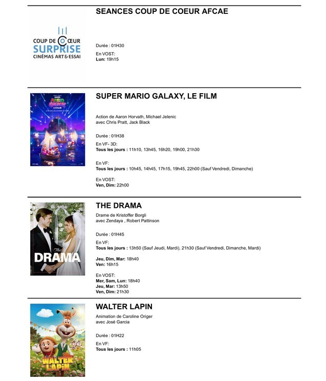 SEANCES COUP DE COEUR AFCAE : lundi 13 avril à 19h15
