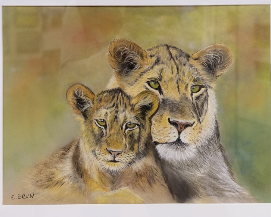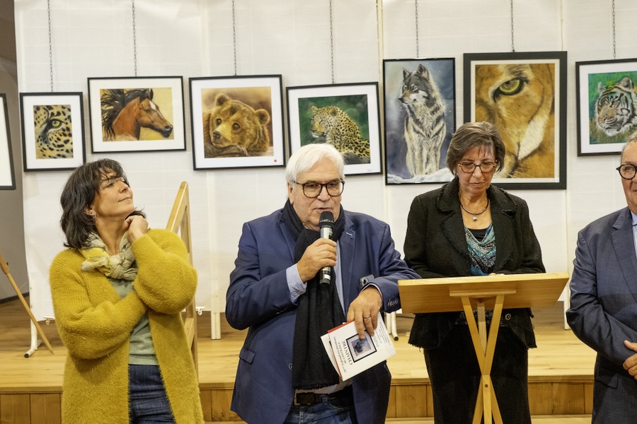 En présence d’Hervé Reynaud, Conseiller départemental délégué à la Cuture et au Patrimoine, de Jean-François Cognard, Maire de Chaintré et Conseiller départemental, ainsi que des Maires et représentants des communes voisines, Jacqueline Bourdon a tout d’abord remercié les personnalités présentes. Elle a ensuite présenté l’invitée d’honneur, Éliane Brun, artiste autodidacte qui a découvert, un peu par hasard, la technique du pastel il y a 25 ans. Passionnée par le monde animal, elle a effectué plusieurs voyages en Afrique, où elle s’est imprégnée d’ambiances inoubliables de la vie sauvage, qu’elle a su retranscrire avec talent sur ses toiles.