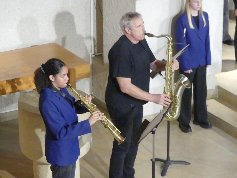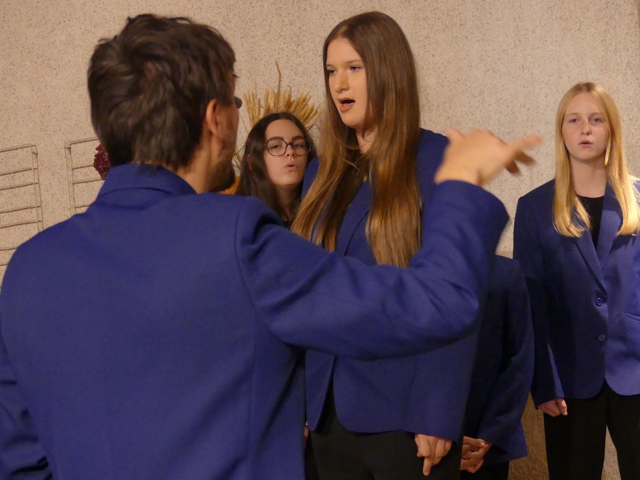 Sous la direction de Nicolas Parisot, la Maîtrise et le Chœur d’hommes du Conservatoire Edgar Varèse de Mâconnais-Beaujolais Agglomération avec la participation des CHAMV CM2 accompagnés par trois saxophonistes ont interprété avec brio huit chants finlandais, estoniens et norvégiens.