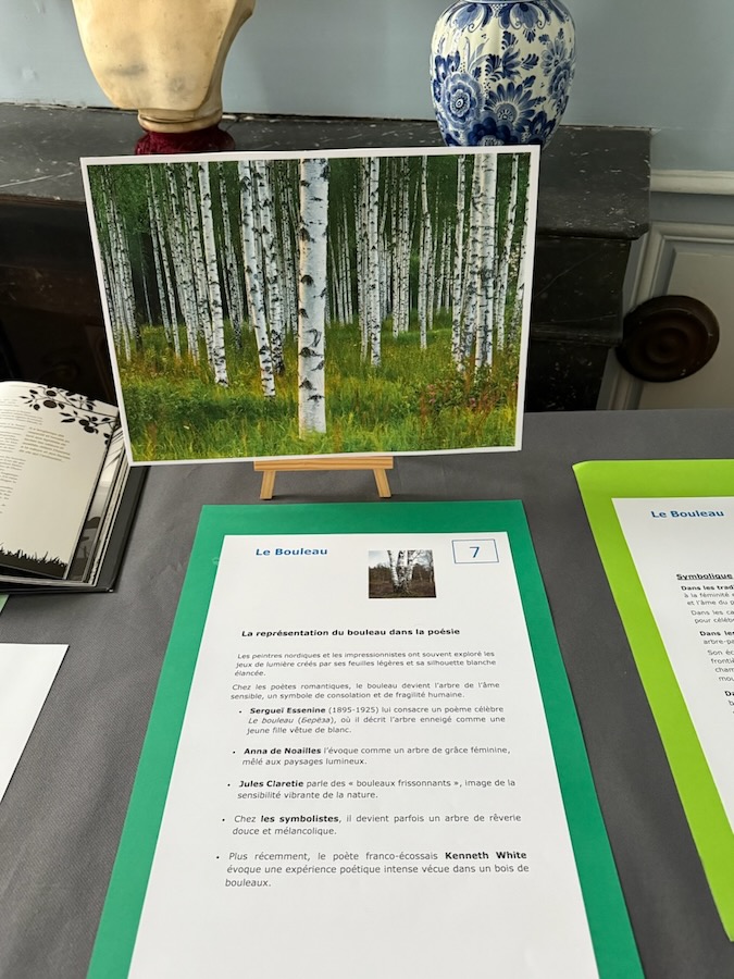 Pour cette exposition, nous avons choisi de revisiter les arbres qui nous entourent en leur associant les émotions qu’ils éveillent en nous. La poésie, témoin et messagère de ces émotions, accompagne ce parcours en résonance avec les œuvres picturales des grands maîtres. »