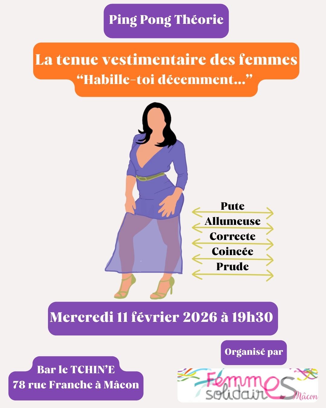 Nous vous attendons nombreuses mercredi 11 février au Tchin’e à Mâcon à 19h30. Hommes bienvenus !