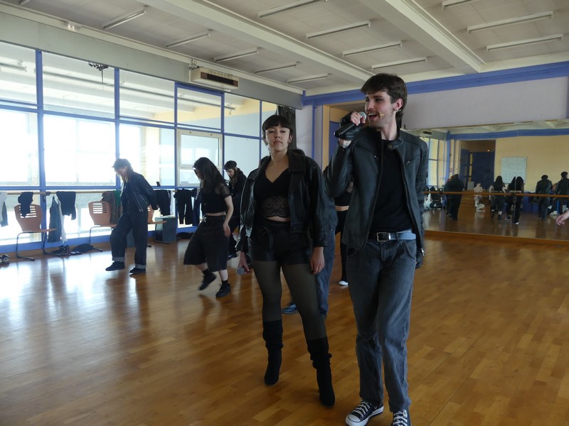 Les étudiant.es étaient en pleine répétition ce jeudi après-midi à la salle de danse du centre omnisports sous le regard bienveillant de Stéphanie Freyer (danse, chorégraphie), Mélanie Guth (comédienne, metteuse en scène) et Isabelle Gorsse (technique vocale, chant).
