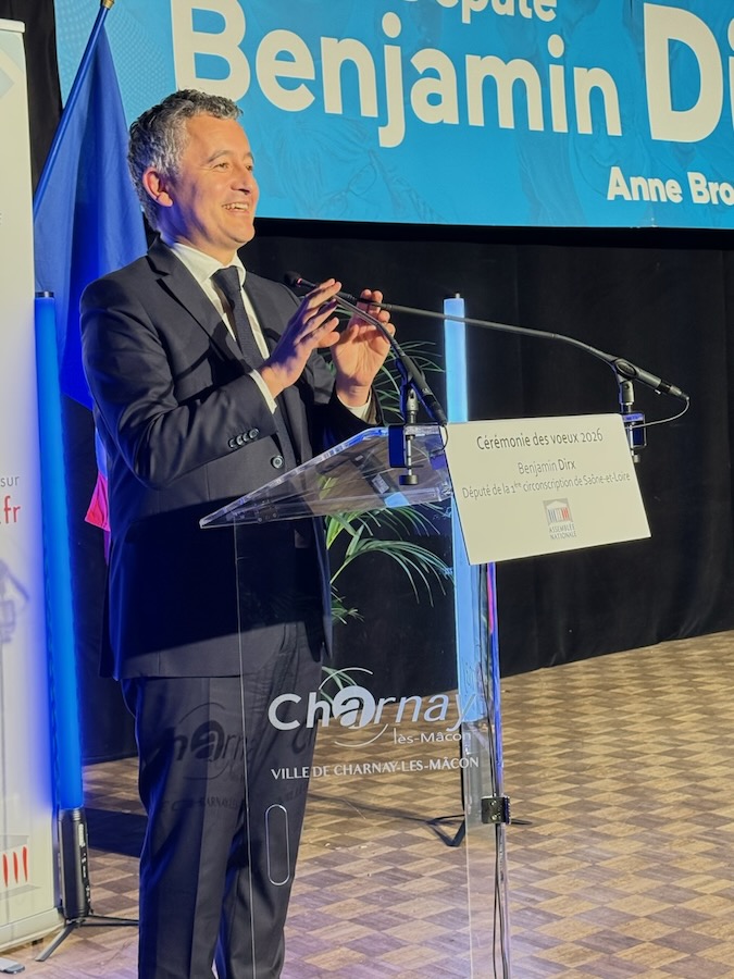 Le secret avait été bien gardé. Depuis quelques semaines, Benjamin Dirx évoquait simplement une « possible surprise » pour sa cérémonie des vœux. Peu imaginaient toutefois que celle-ci descendrait du TGV de 19h30. Gérald Darmanin, ministre de la Justice, a fait une entrée très remarquée à la salle de la Verchère, accueilli comme une véritable star par les plus de 800 personnes réunies pour les vœux du député Ensemble de la 1ʳᵉ circonscription de Saône-et-Loire.